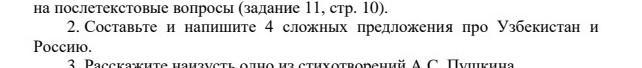 Составьте и напишите четыре сложных предложения про Узбекистан и Россию.