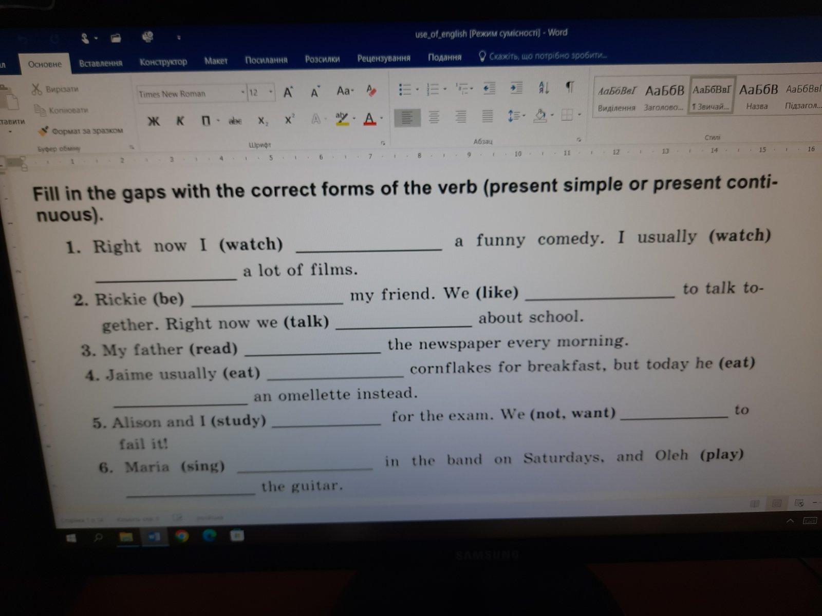 1. Right now, i watching a funny comedy. I usually watching a lot of films.