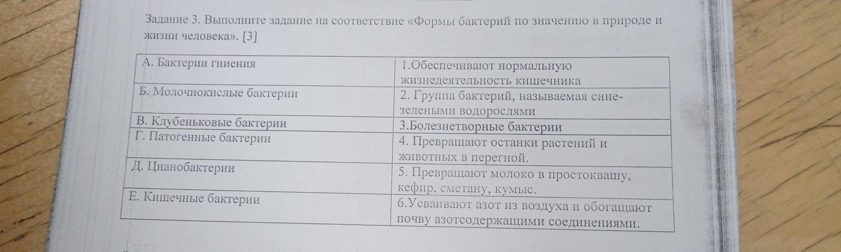 выполните задание на соответсвие « формы бактерий по значению в природе и жизни человека »