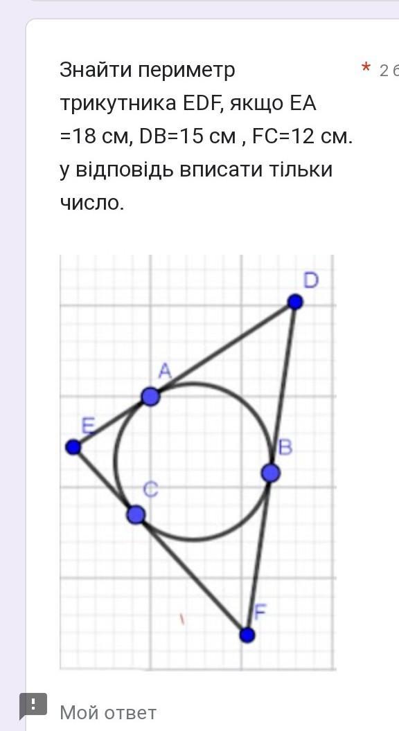 Знайти периметр трикутника EDF, якщо ЕА =18 см, DB=15 см , FC=12 см. у відповідь вписати тільки число. дам много балов срочноооо