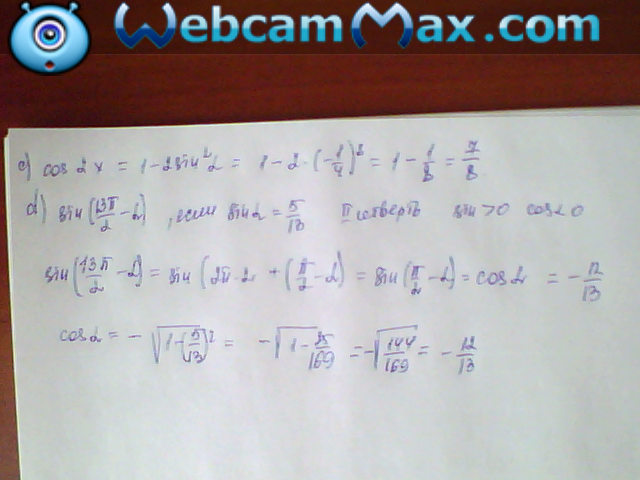 d) sin(13π/2-α), если sinα=5/13, α-угол второй четверти