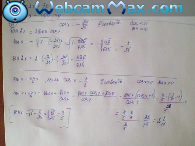 b) sinx+tgx, если cosx=3/5, x-угол первой четверти