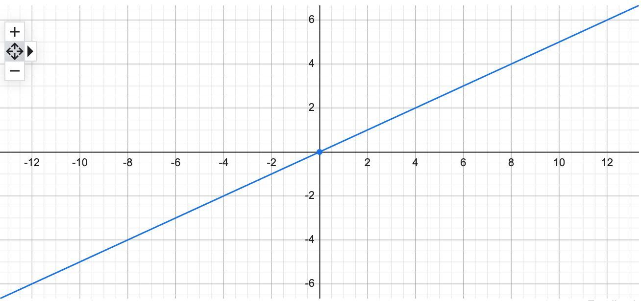 то есть когда берем х 0 у тоже будет 0, когда х равен 2 игрик равен одному, если соединить эти точки прямой, то получиться такая прямая: (смотреть закреп)
