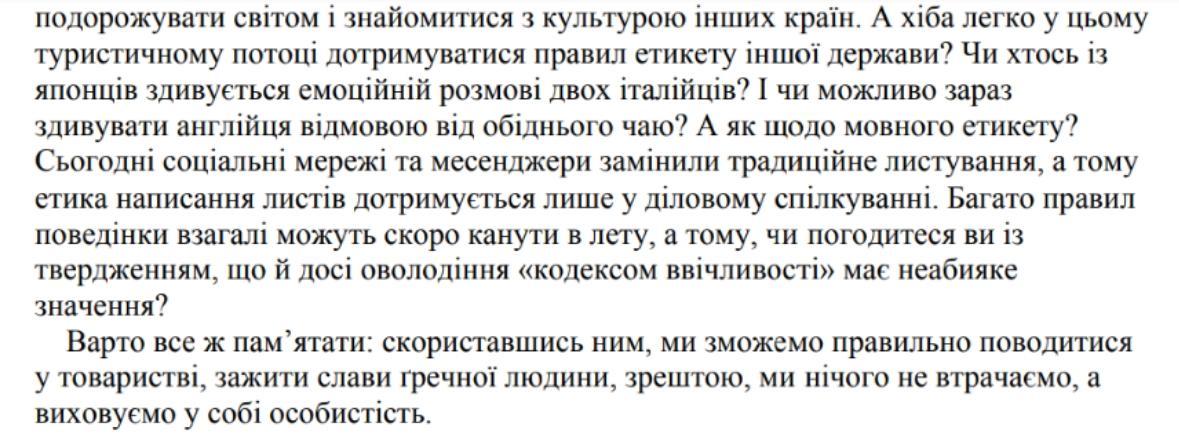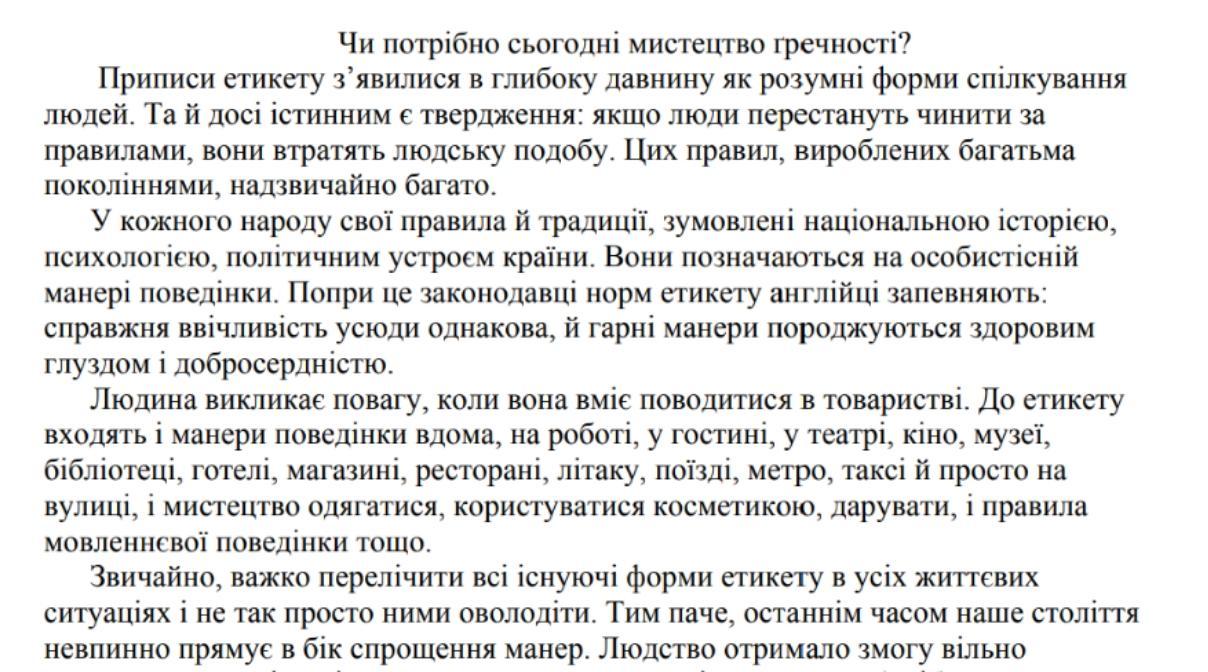 Гречність з'явилася давно. Досі є істинне твердження: якщо люди перестануть чинити за правилом, то вони втратять людську доброту. У кожного народу є свої правила та традиції. Вони показуються на особистій манері, поведінці. Коли людина вміє себе поводити нормально серед інших - вона виявляє повагу. До усього етикету входить: манери поведінки на роботі, вдома, кінотеатрі, вулиці, школі, магазині, таксі. Ми маємо можливості подорожувати і знайомитися з культурою інших країн. На сьогоднішній день соціальні мережі і месенджери заміняють традиційне листування. Якщо користуватись мистецтвом гречності, то ми зможемо ввічливо поводитися у суспільстві.
