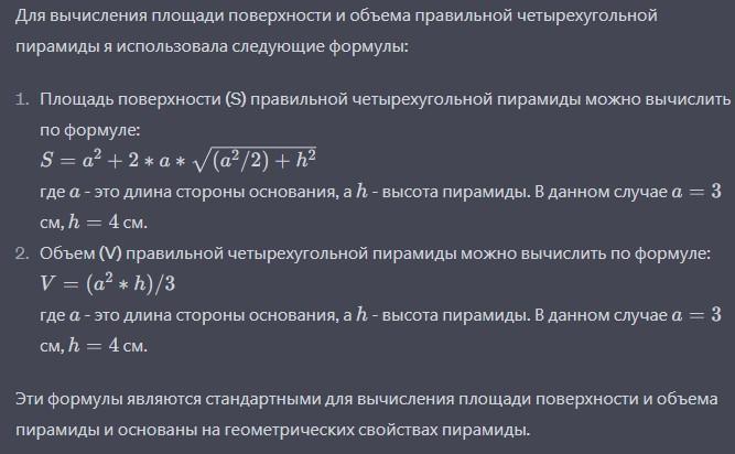 №4. Найдите площадь и объем правильной четырехугольной пирамиды со стороной основания 3см и высотой 4 см.