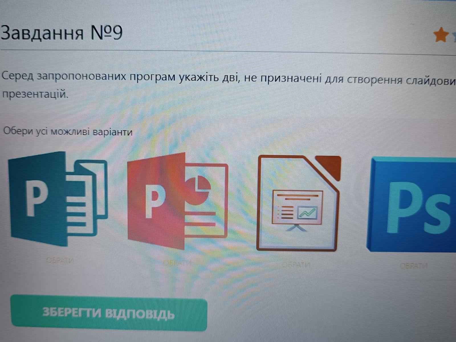 серед запропонованих програм укажіть дві які не призначені для створення слайдових презентацій