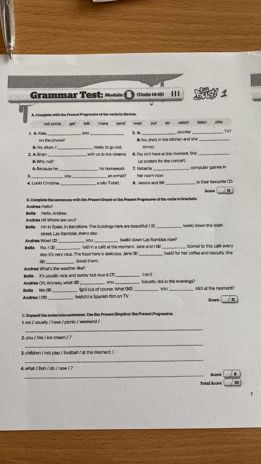 GRAMMAR TEST: MODULE 5 (UNITS 14-15)