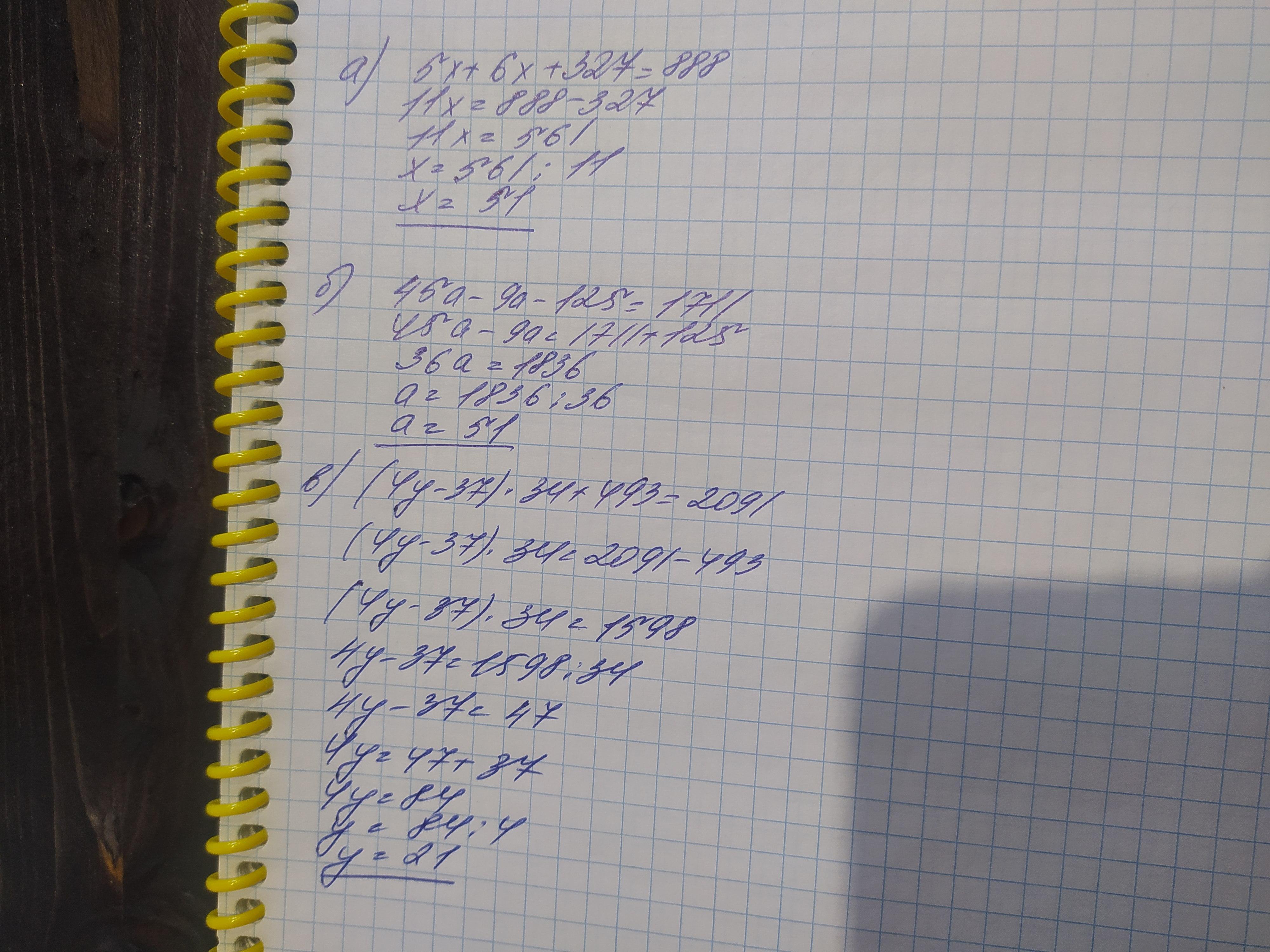 в)(4у-37)•34+493=2091