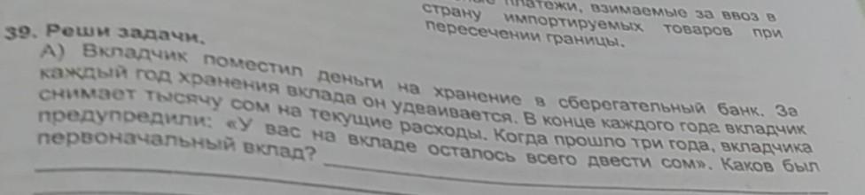 Условие задачи говорит, что после трех лет на вкладе осталось 200 сом, поэтому: