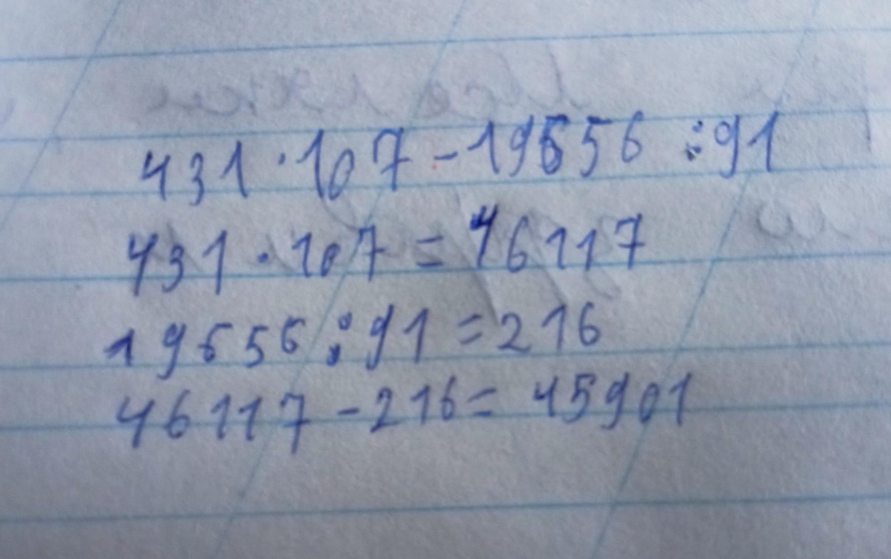 431 - 107 - 19656:91=431 - 107 - 216=108