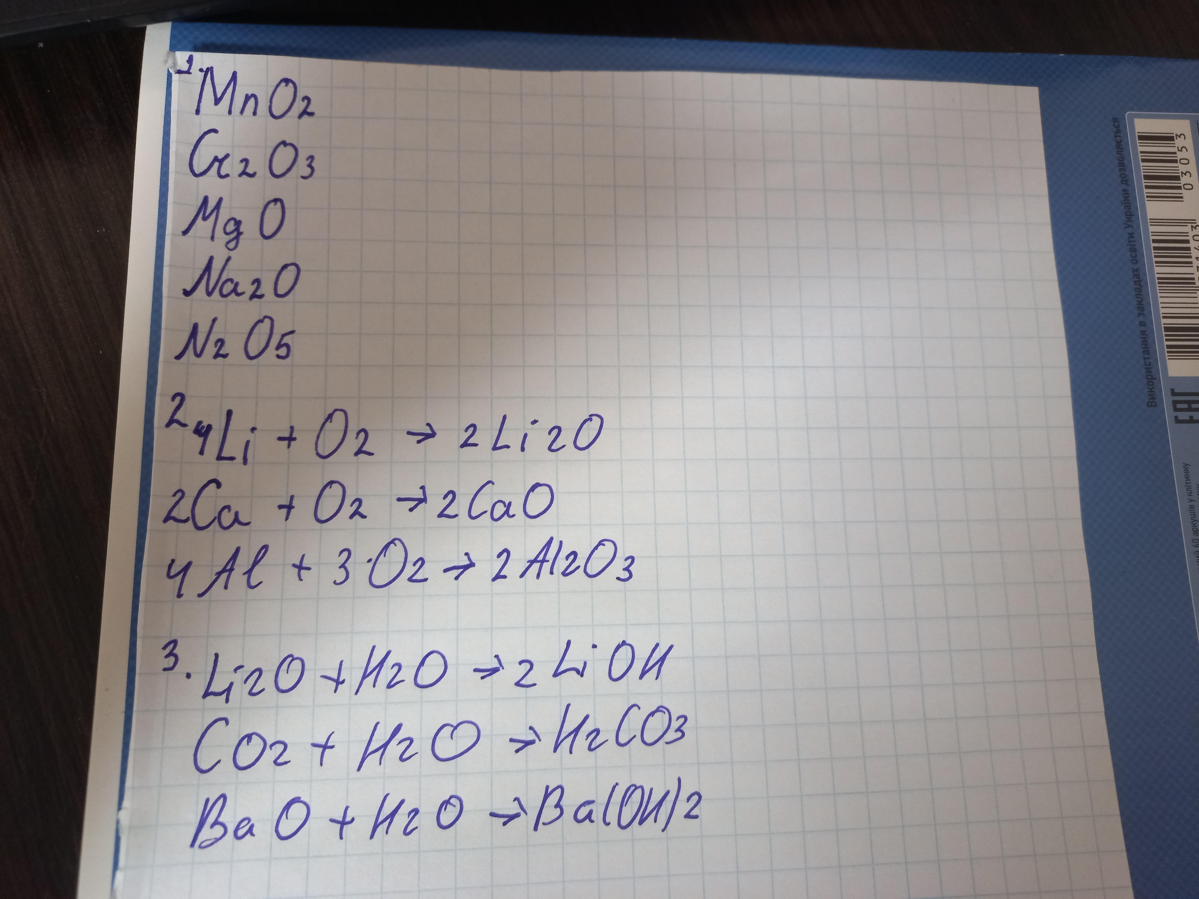 2) Написати рівняння хім реакцій між киснем і такими елементами: літієм, кальцієм, алюмінієм