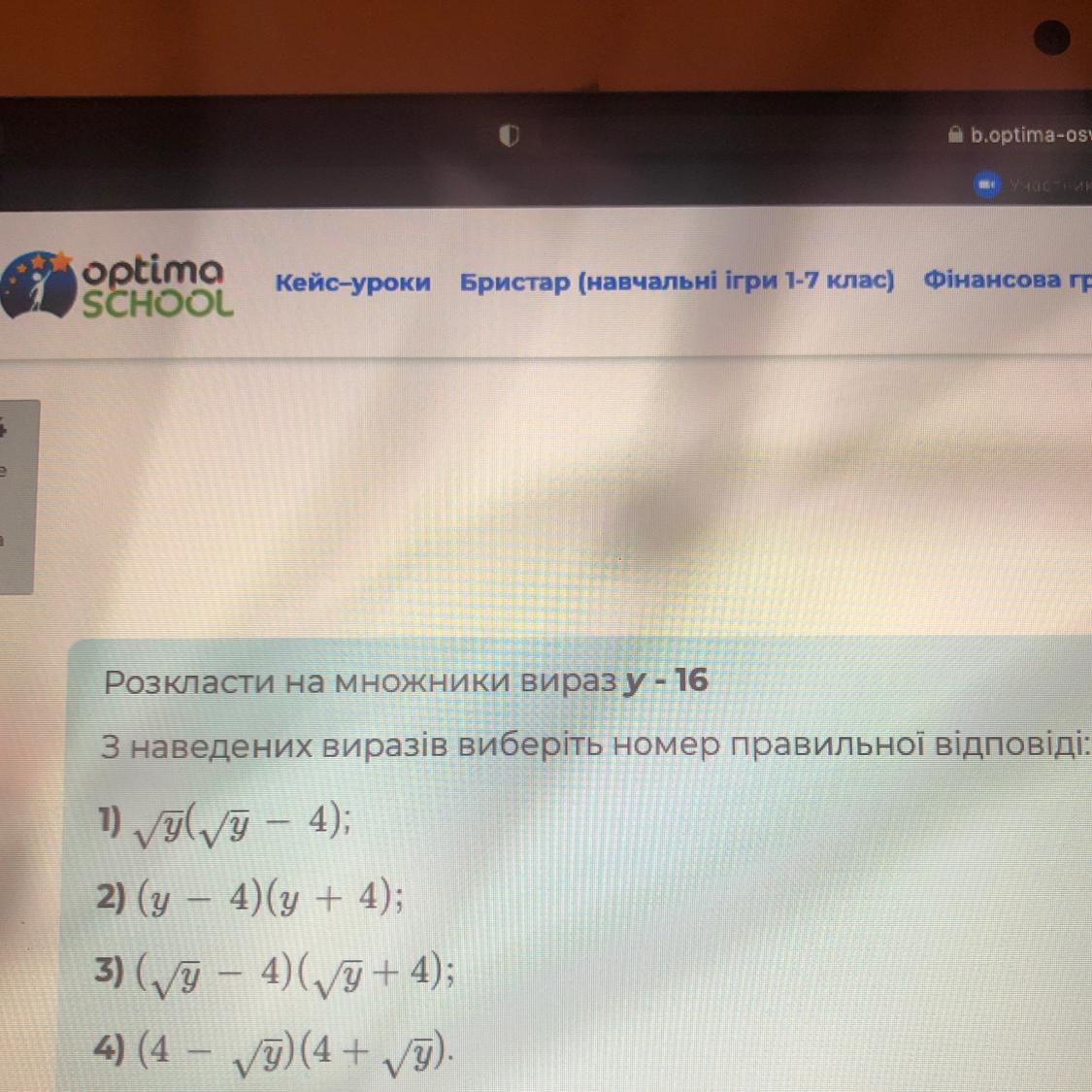 y - 16 можемо представити у вигляді формули різниці квадратів , тоді: