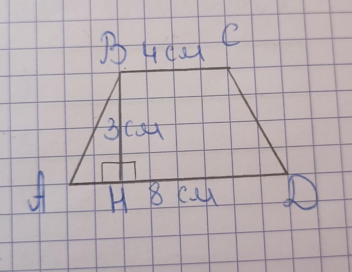 пудьте добрый, с фото. Основи трапеції дорівнюють 8 см і 4 см, а її висота - Знайдіть площу трапеції. 3 см.