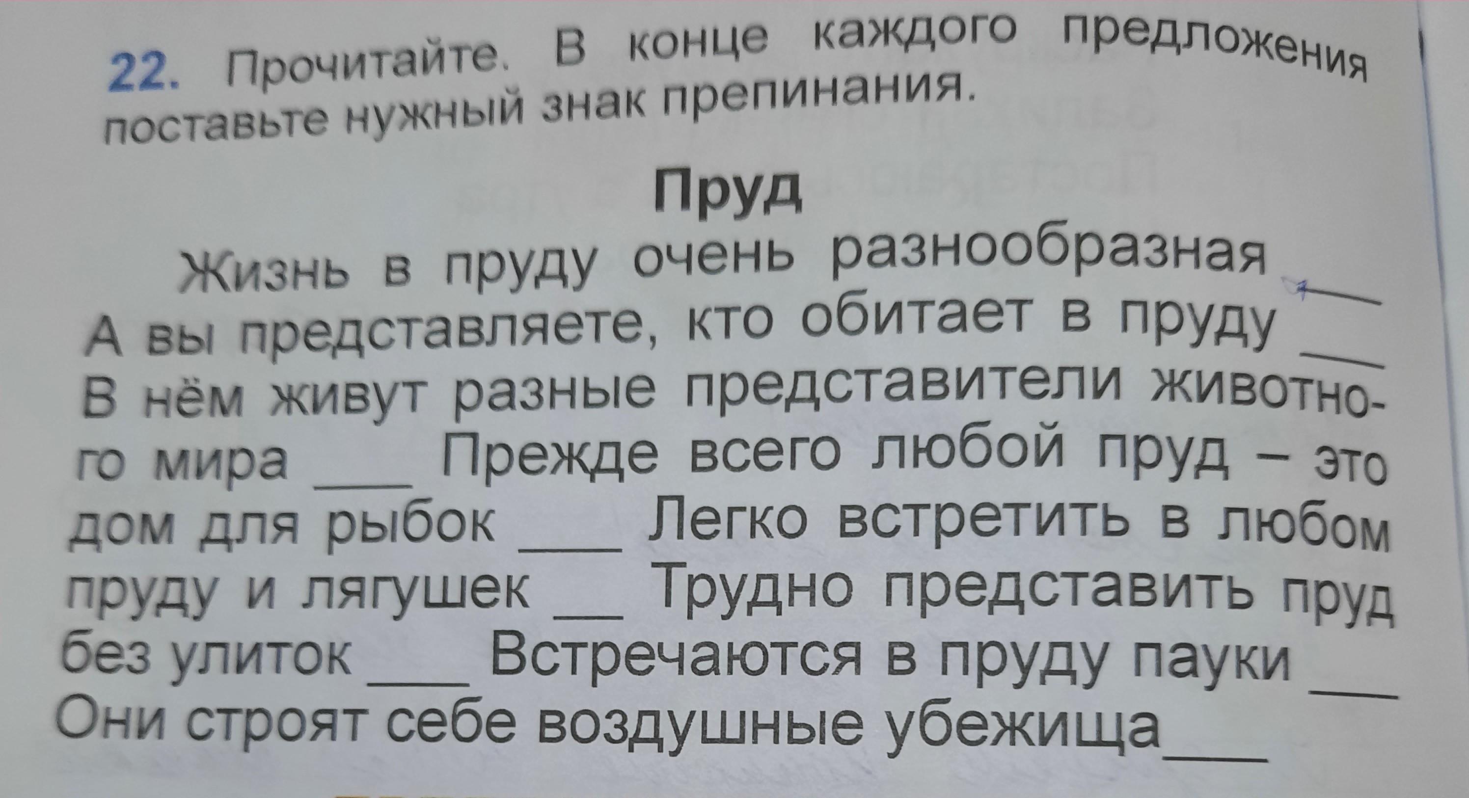 Жизнь в пруду очень разнообразная. А вы представляете, кто обитает в пруду? В нём живут разные представители животного мира. Прежде всего любой пруд - это дом для рыбок. Легко встретить в любом пруду и лягушек. Трудно представить пруд без улиток. Встречаются в пруду пауки. Они строят себе воздушные убежища.