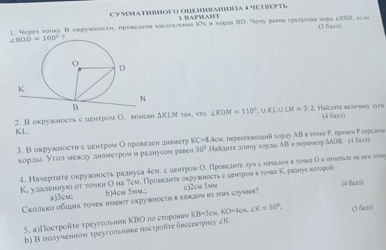 OB = OD так как это радиусы окружности, что значит треугольник ВОD равнобедренный, согласно этому угол <ОВD и угол <ODB равны. Следовательно 180°- <BOD= 180-100=80°