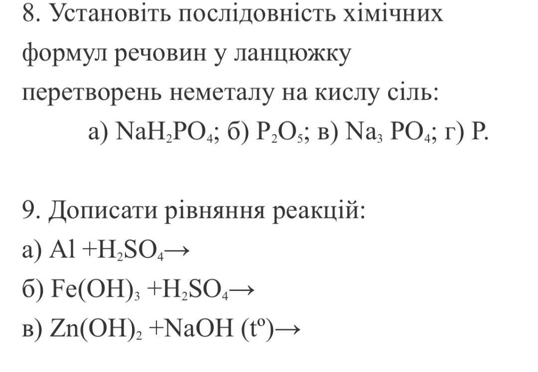 8. P→P2O5→NaPO4→NaH2PO4