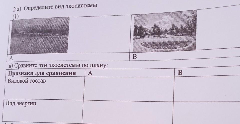 2 а) Определите вид экосистемы A в) Сравните эти экосистемы по плану: Признаки для сравнения A Видовой состав Вид энергии B B