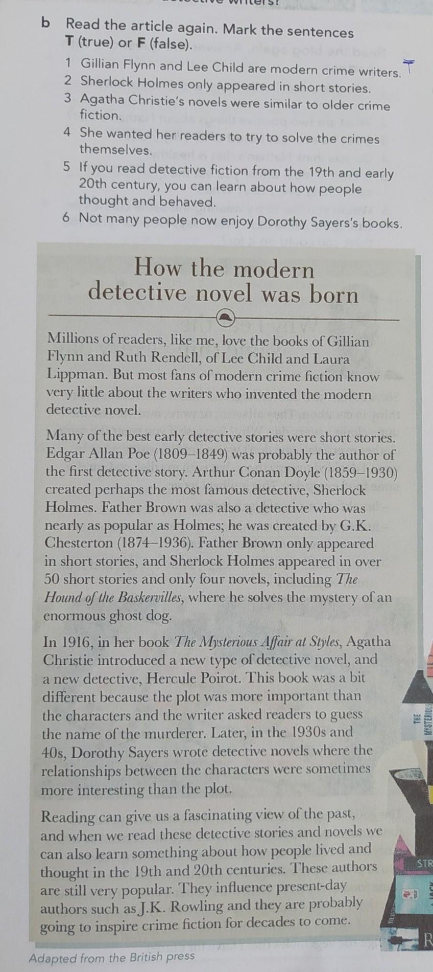 Read the article again . Mark the centenses Trrue or False 1. Gillian Flynn and Lee Child are modern crimes ДАЮ 60 БАЛЛоВ