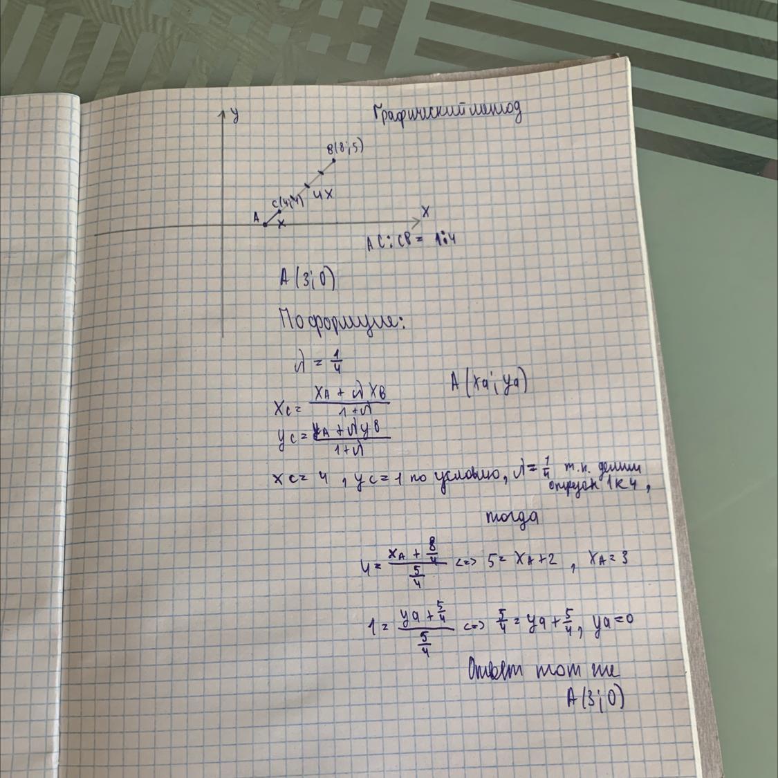Отрезок AB разделили точкой С(4;1) в отношении 1:4 считая от точки А. Найти
