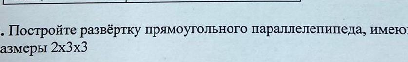 Постройте развертку прямоугольного параллелепипеда 2×3×3, извините нормальной фотки нет