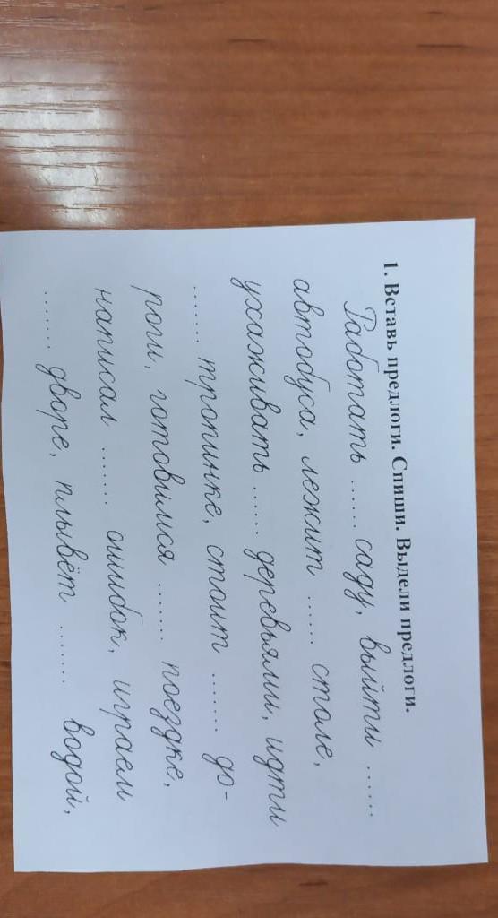 Работать_в_ саду, выйти _на астановке_ автобуса, лежит_еда на_столе, ухаживать_за_ деревьями, идти_по_трапинке, стоит_знак_дороги, готовимся_к_поездкн, написал_без_ошибок, играем_в_дворе, плывёт_под_водой