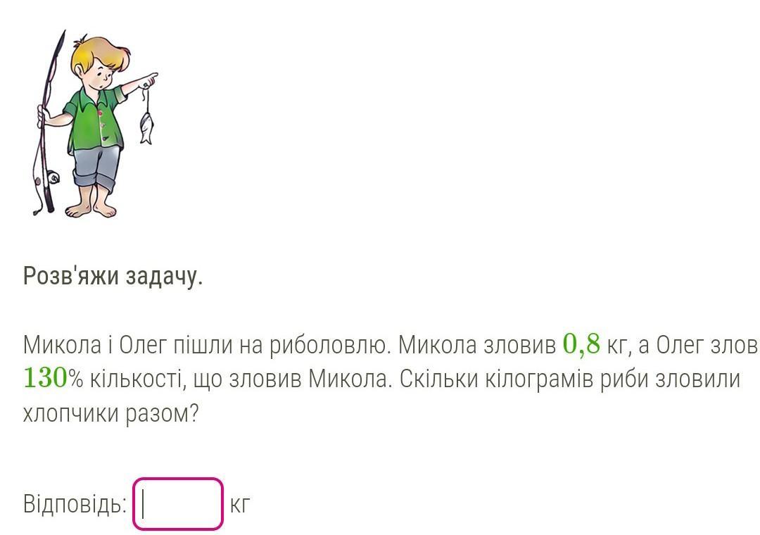 Олег зловив 130% від кількості риби Миколи.