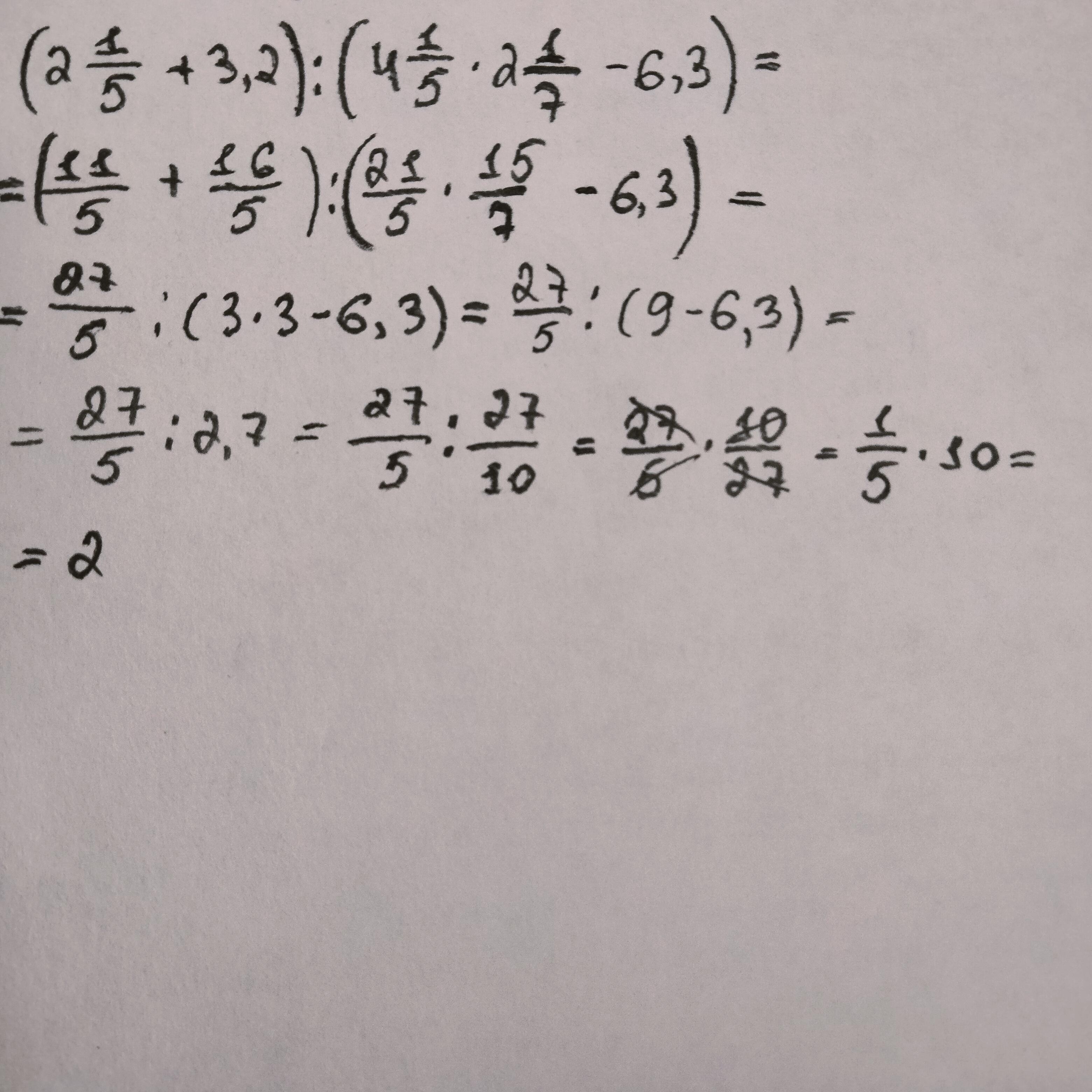 4) 5,4 : 2,7 = 2