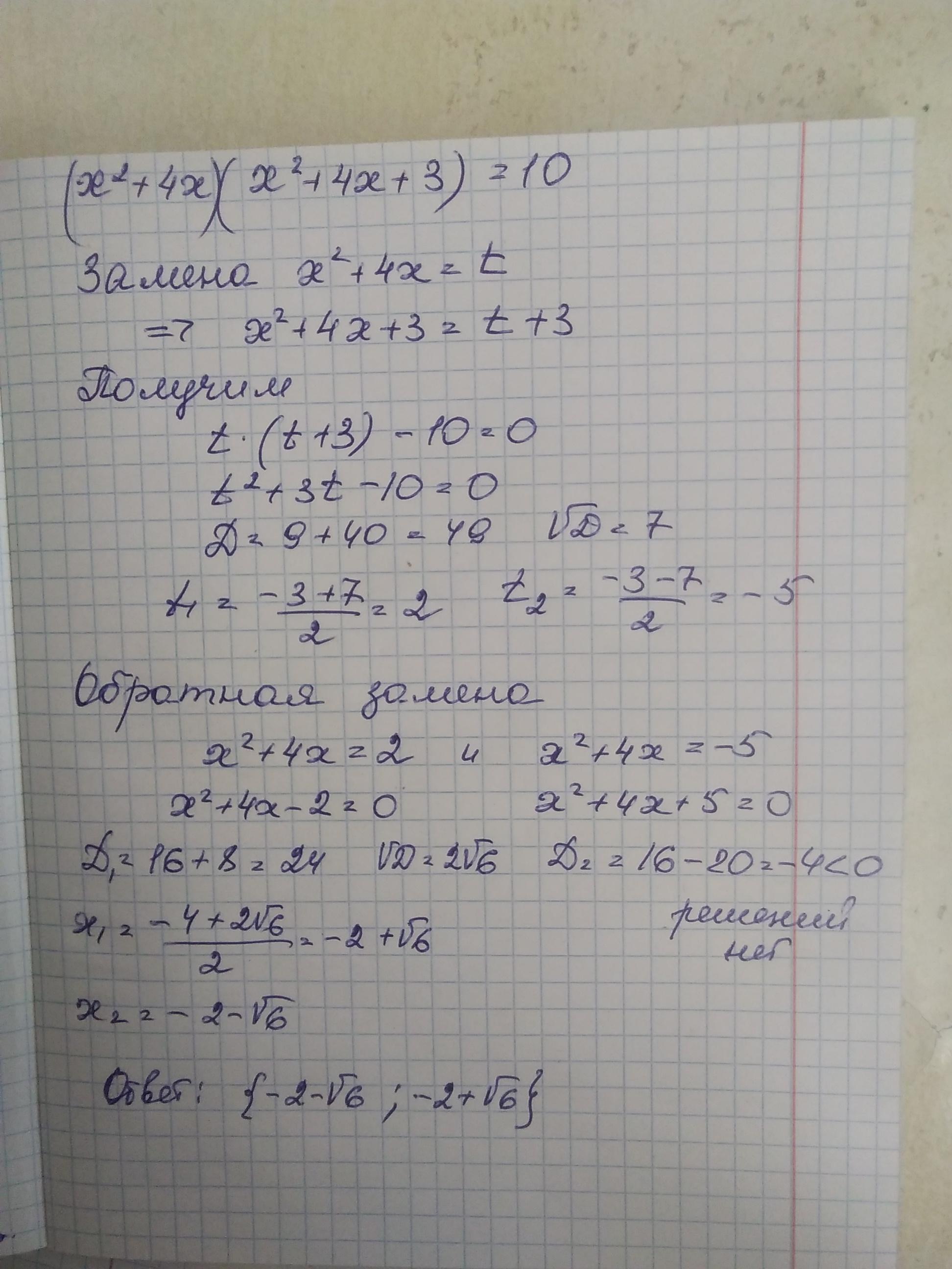 (x²+4x)(x²+4x+3)=10