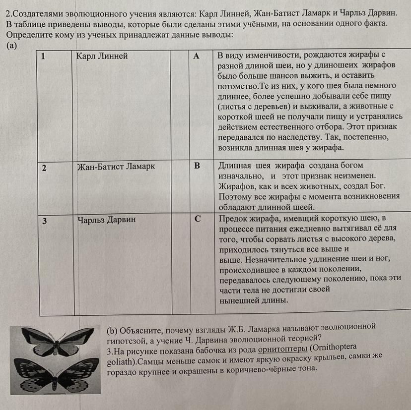 (b) Объясните, почему взгляды Ж.Б. Ламарка называют эволюционной гипотезой, а учение Ч. Дарвина эволюционной теорией?