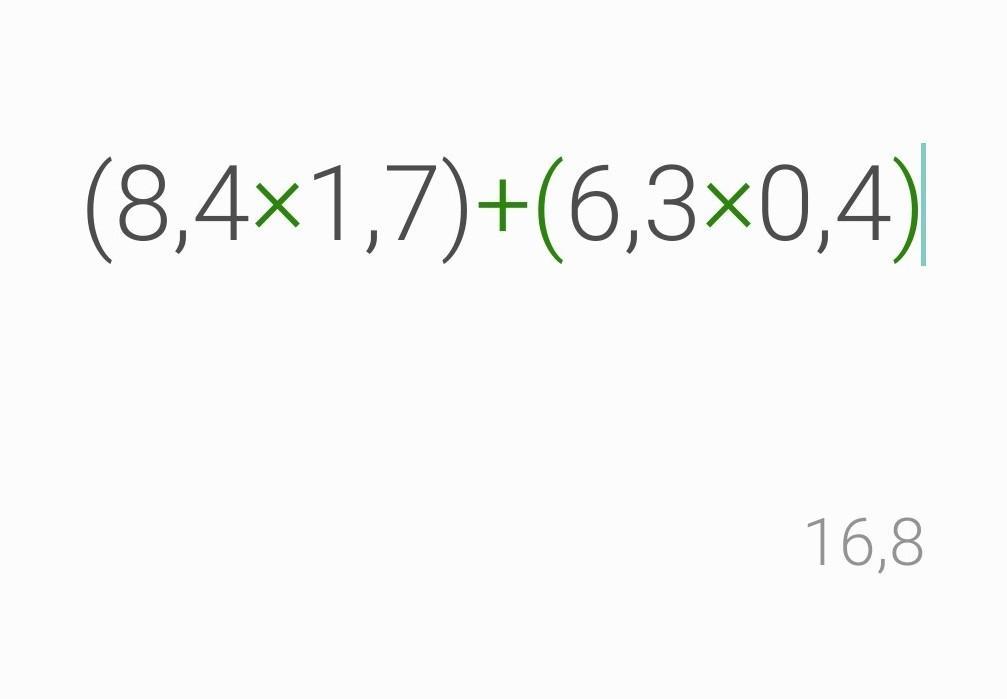 8.4 * 1.7 + 6.3 ÷ 0.4