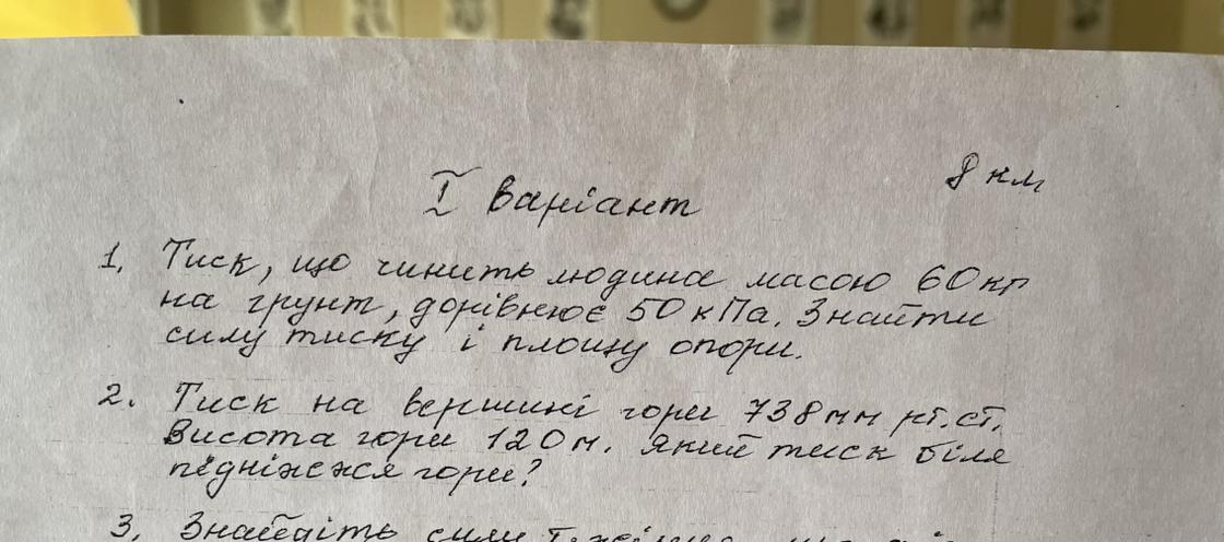 Ответ:1. Сила тиску може бути знайдена за формулою F = P * A, де P - тиск, а A - площа опори. Перетворюємо одиниці до СІ: 50 кПа = 50 000 Па. Щоб знайти площу опори, використовуємо формулу A = F / P. Отже, F = 60 кН = 60 000 Н, P = 50 000 Па. A = 60 000 Н / 50 000 Па = 1.2 м^2. Тоді сила тиску на площу опори дорівнює F / A = 60 000 Н / 1.2 м^2 = 50 000 Па = 50 кПа.