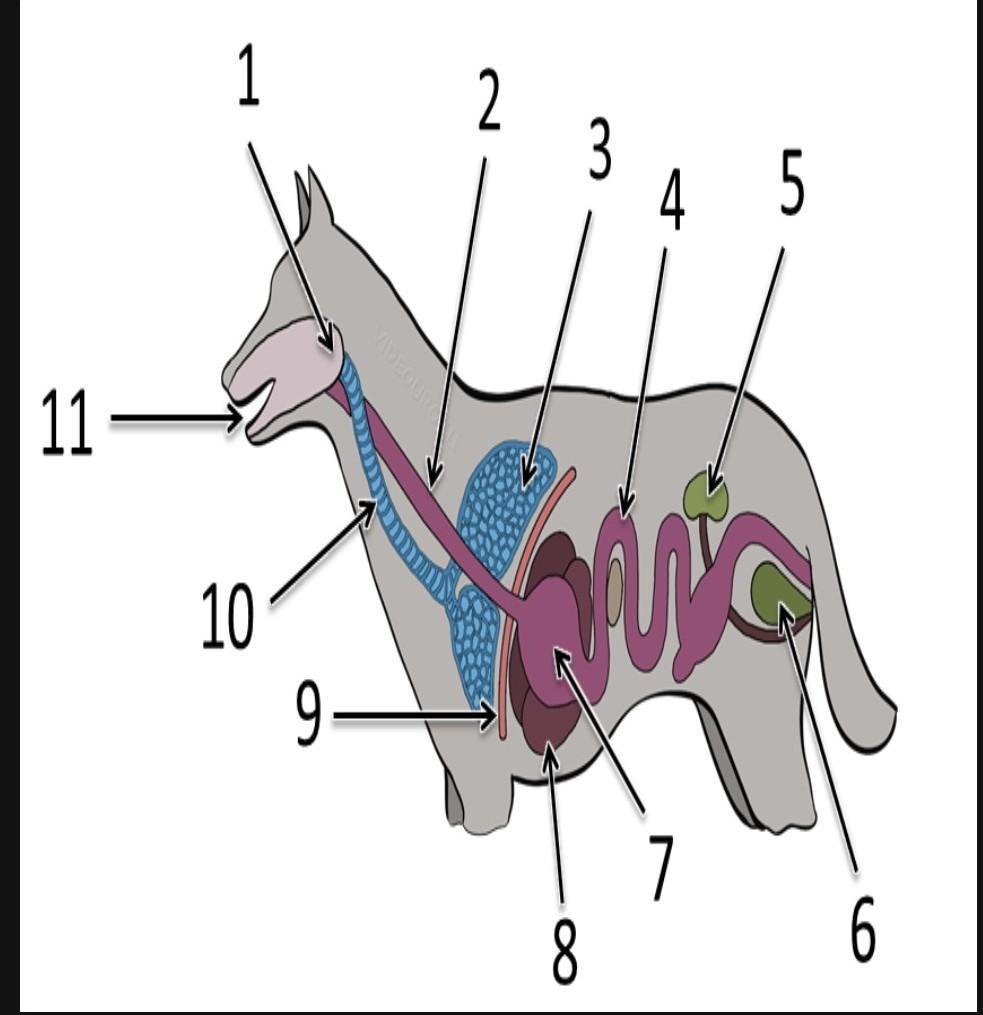 2) Рассмотрите рисунок "Внутреннее строение собаки». Подпишите, какие органы собаки обозначены под цифрами 1-11.