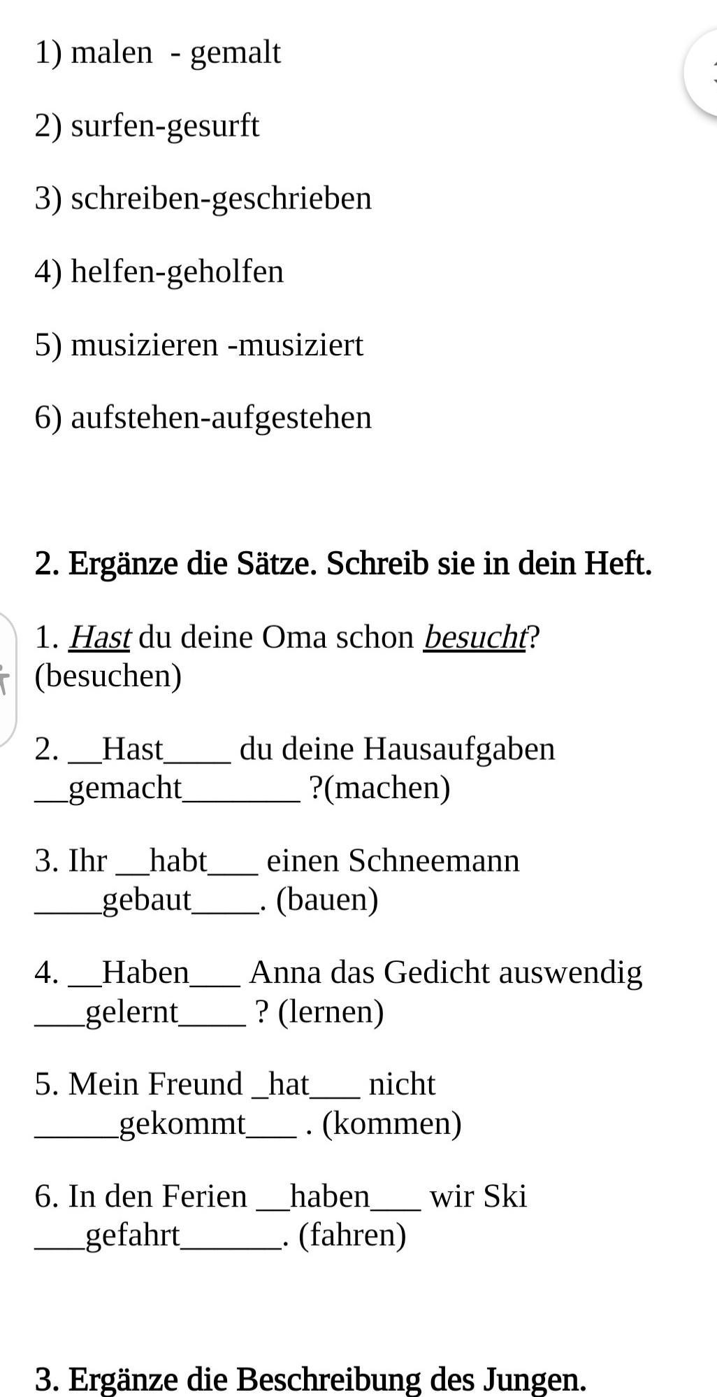 Завдання 2 - записати речення, використовуючи часову форму Perfekt