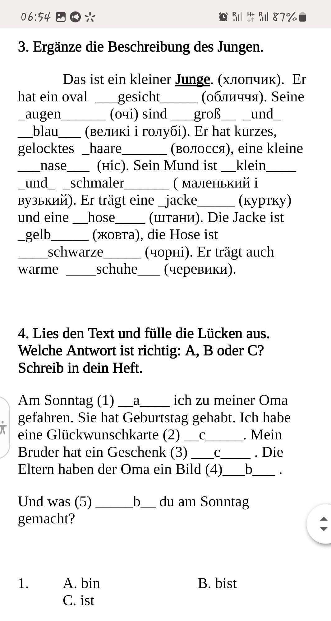 Завдання 3 - переписати текст, вставляючи слова німецькою мовою. Вставлені слова підкреслити