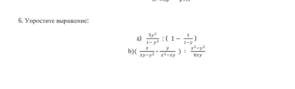 6. Упростите выражение: b) ( 5y² 1-y² (1- ху-уч х²-ху - 1-у ): x²-y2 8xy