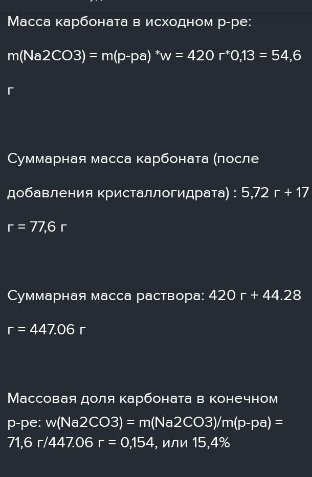 3. Рассчитайте массовую долю (%) вещества в растворе, полученном при растворении карбоната натрия массой 35 г в воде массой 125 г.
