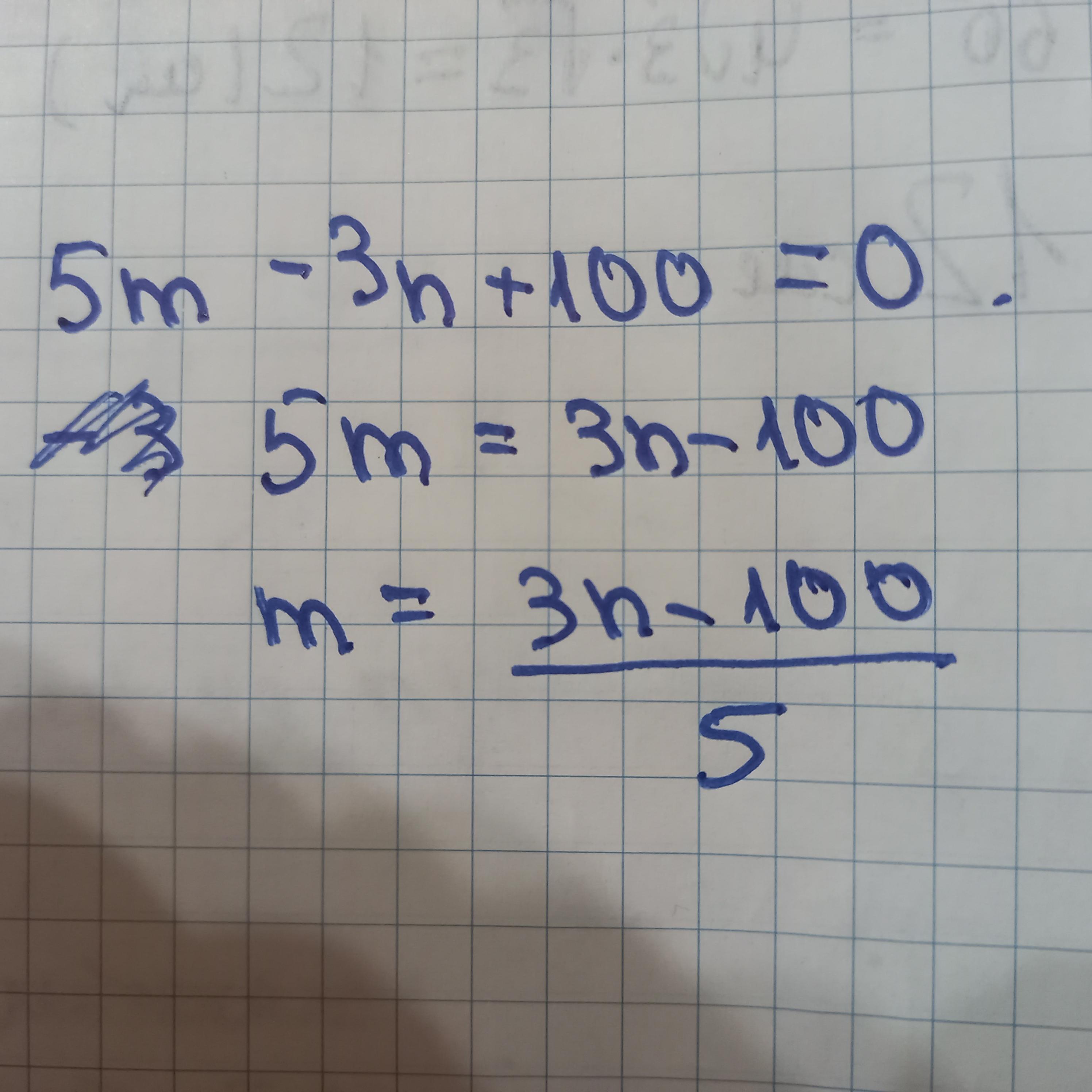 дано лінійне рівняння з двома змінними 5m-3n+100 = 0. . вирази змінну m через іншу змінну n .