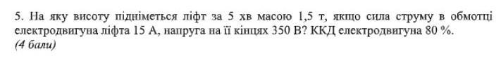 h=UItη/(mg)=350*15*300*0,8/(1500*10)=84м