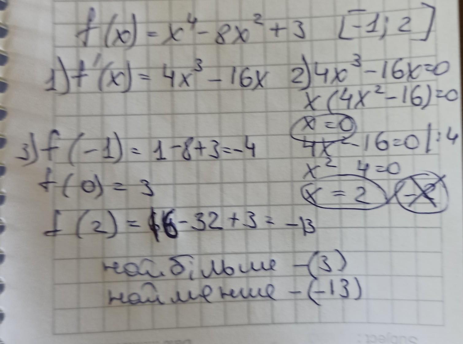 Найдите наибольшее и наименьшее значение функции на отрезке