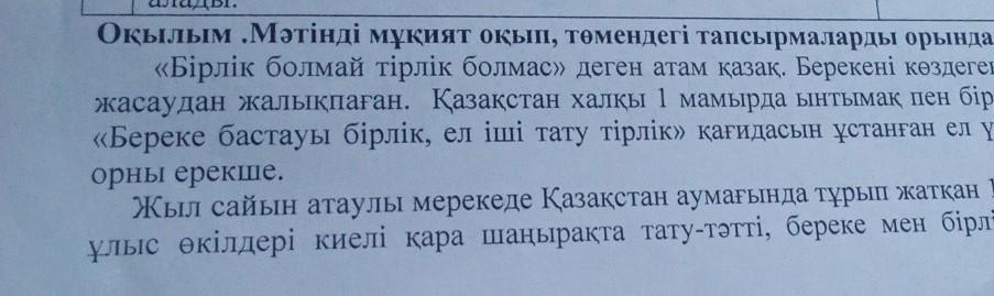 1.Мәтіннің негізгі тақырыбы-бірлік күні