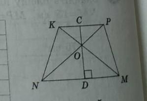 10 У трапеції NKPM основи дорівнюють 12 см і 18 см, а висота 15 см (рис. 5). Знайдіть площі трикутників NKO i POM.