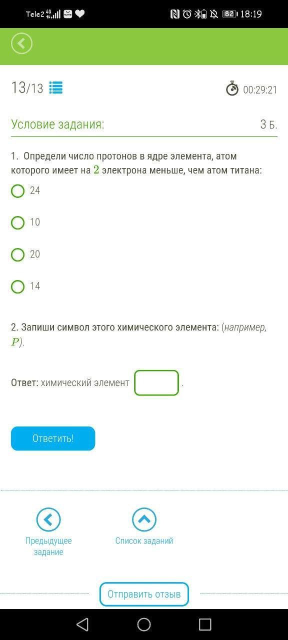 Элемент с 20 электронами имеет 20 протонов в ядре