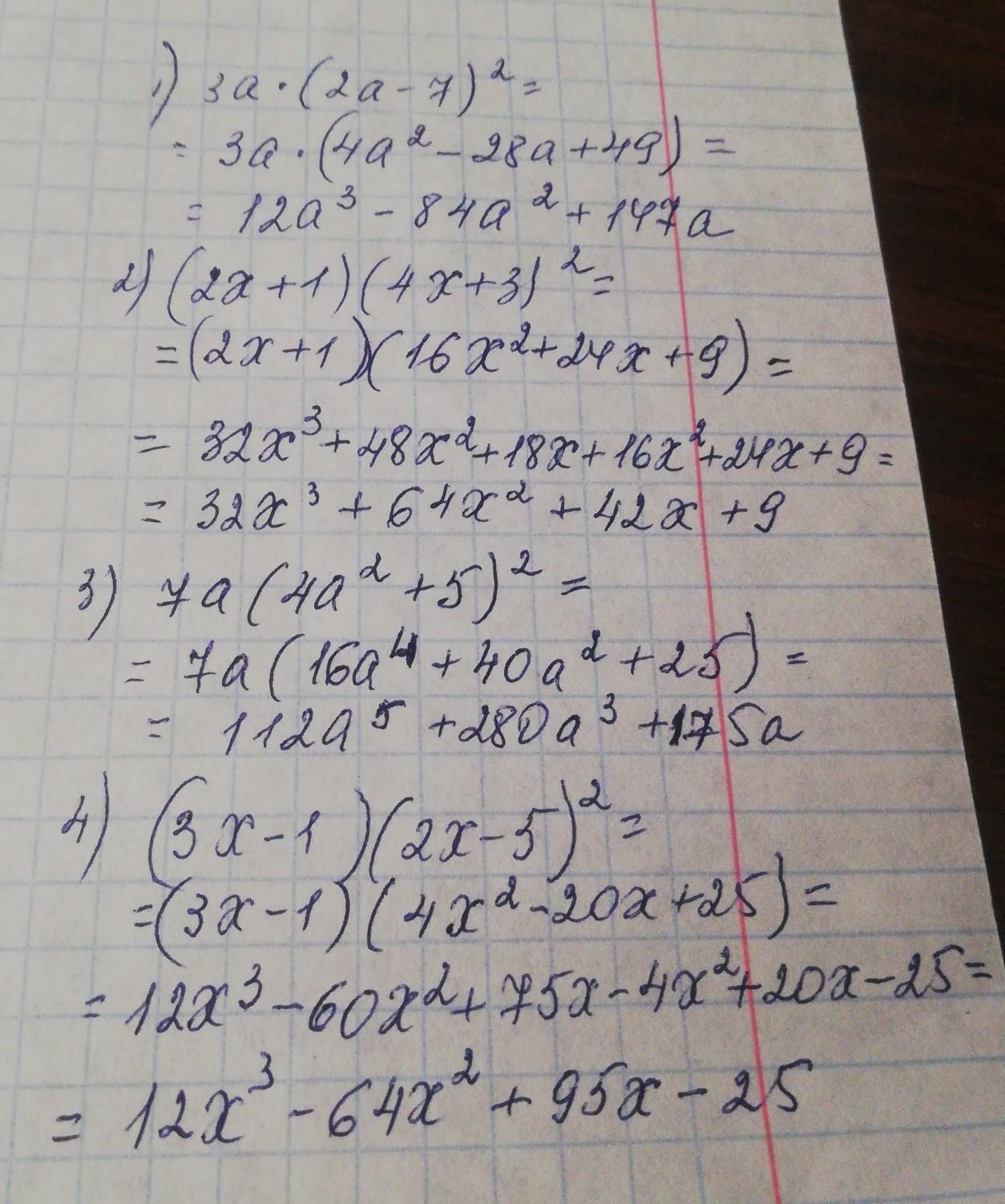 Представьте выражения в виде многочлена: 1) 3a * (2a - 7)²