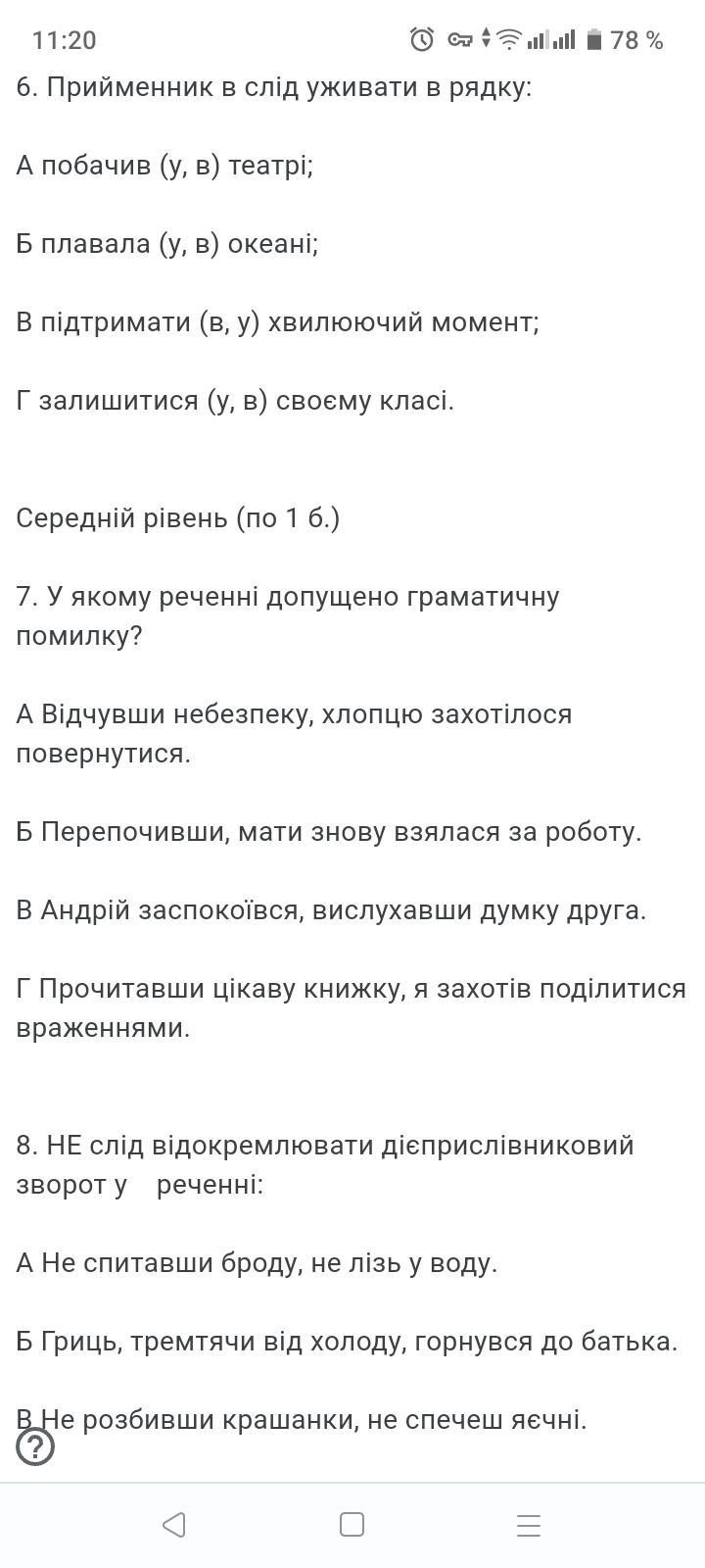 8. У цьому завданні у всіх трьох реченнях потрібно відокремлювати комою дієприслівниковий зворот, можливо є ще якийсь варіант відповіді?