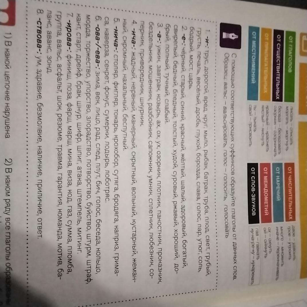 С помощью соответствующих суффиксов образуйте глаголы от данных слов.
