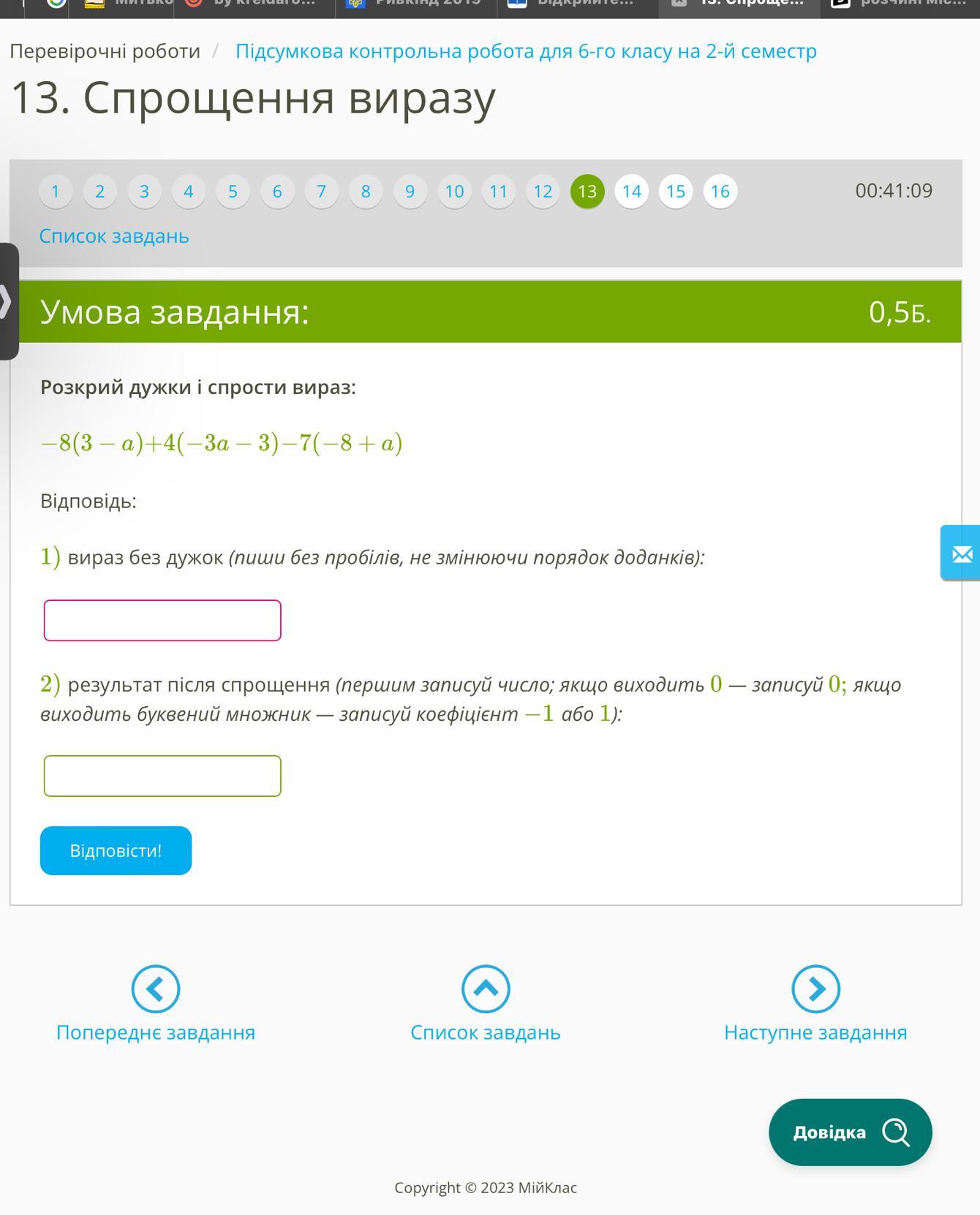 2) результат після спрощення (першим записуй число; якщо виходить 0) — записуй 0; якщо