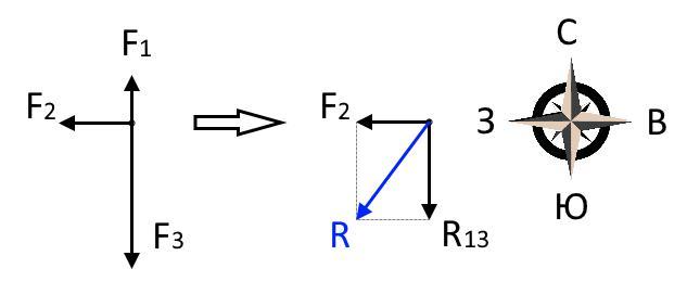 F₃ = 4,5 Н к югу