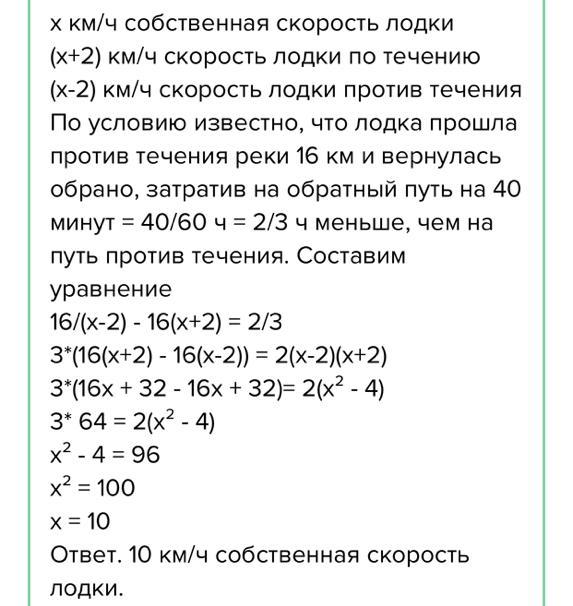 Моторная лодка прошла против течения 16 км против течения, за это время она прошла 10 км.Если скорость лодки 2 км/ч, найти скорость течения воды.