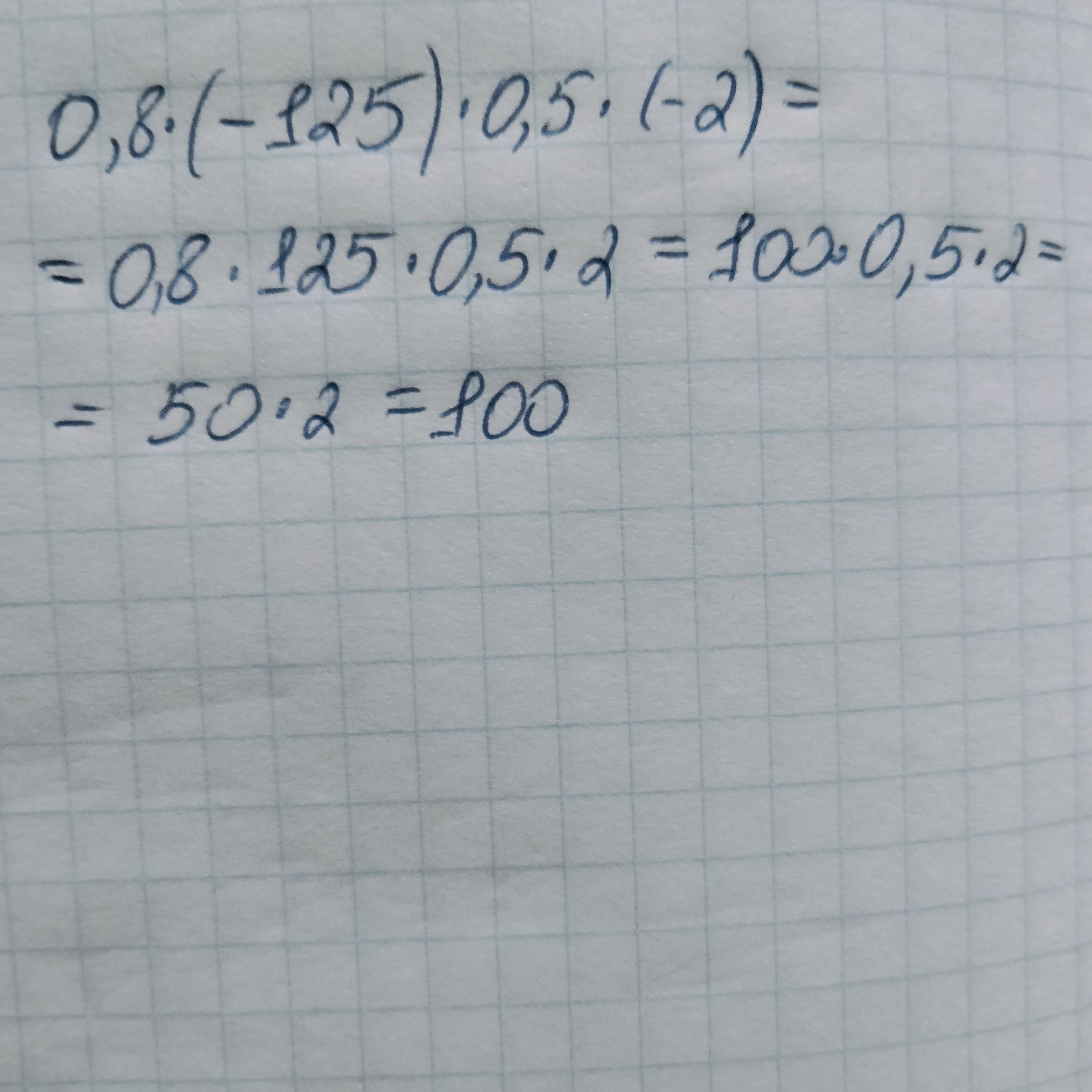 0,8(-125) * 0,5 * (-2) = (0,8 * (-125)) * (0,5 * (-0,2)) =