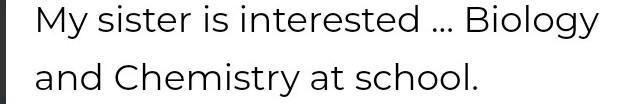 Відповідь:my ister interested IN biology and chemistry at school